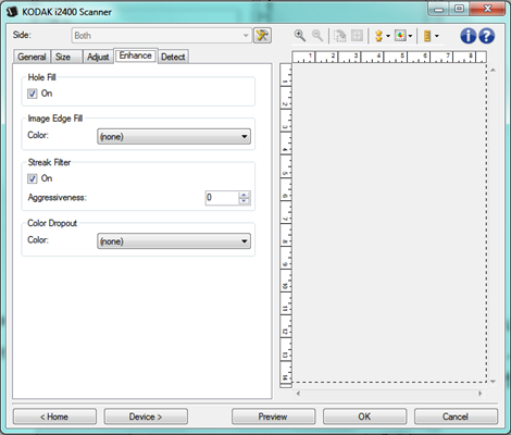 • Hole Fill در این حالت برگه های دارای سوراخ پانچ را تشخیص داده و حفره های اسکن شده را همرنگ صفحه ایجاد می کند. سایر موارد در همان حالت پیش فرض قرار خواهند گرفت و جهت بسته شدن پنجره بر روی OK کلیک کنید