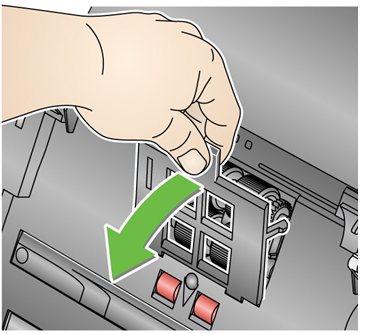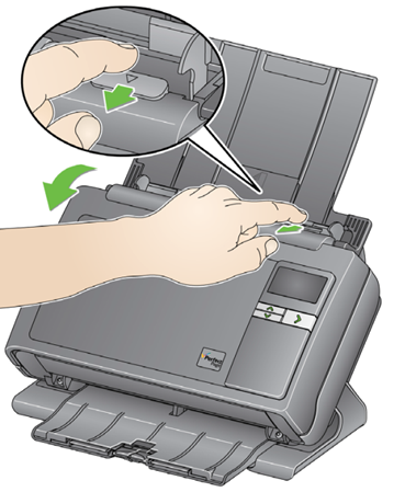 • ابتدا درب مربوط به اسکنر را میبایست توسط فشاردادن ضامن، بازنمایید