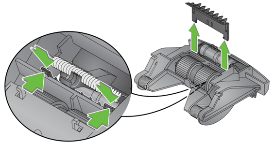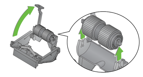 • نحوه تعویض نمودن رولرهای طوسی رنگ مربوط به ماژول جداکننده کاغذ مطابق شکل زیر میباشد