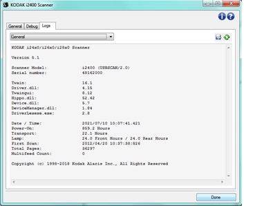 • در سربرگ آمده تمامی سوابق میزان استفاده از دستگاه و خطاهای اسکنر را مشاهده می کنید