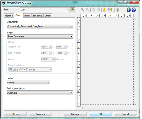به طور اتوماتیک زوایای مربوط به اسناد توسط اسکنر تشخیص داده می شود در غیر اینصورت از تمیز بودن شیشه ماژول اسکنر بالا و پایین اطمینان حاصل نمایید