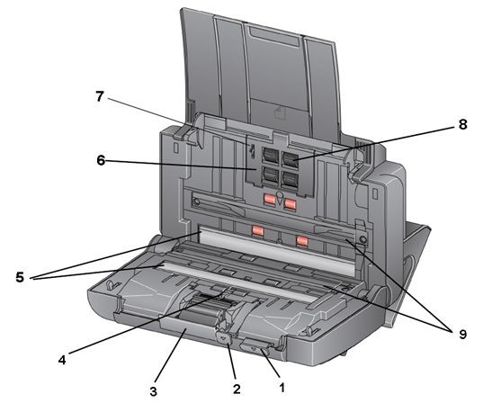 - سینی ورودی کاغذ: محل قرارگیری اسناد برای اسکن.
