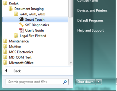 Start Menu\Programs\Kodak\Document lmaging\ i24x0, i26x0, i28x0\ SmartTouch