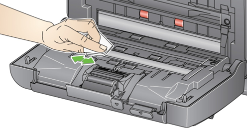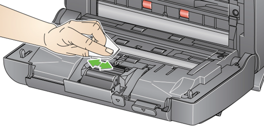 • دستگاه فوق دارای دو ماژول اسکنر بالا و پایین در دوطرف می باشد که با استفاده از پنبه نرم یا دستمال نرم مرطوب مطابق شکل زیر نسبت به تمیز نمودن صفحه ی شیشه ای اسکنرها اقدام نمایید