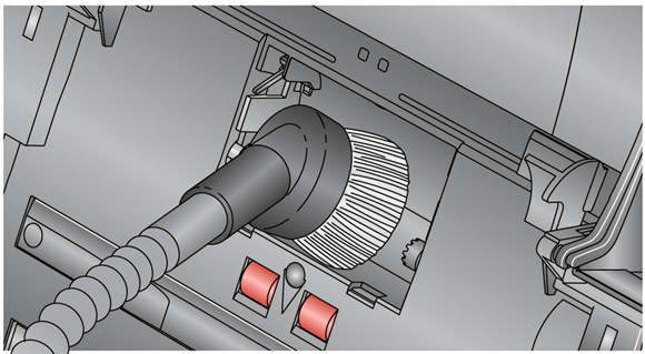 • مطابق شکل زیر با استفاده از دمنده/مکنده بولیور می بایست محل قرار گیری ماژول کشنده کاغذ را از گردوغبار تمیز کنید